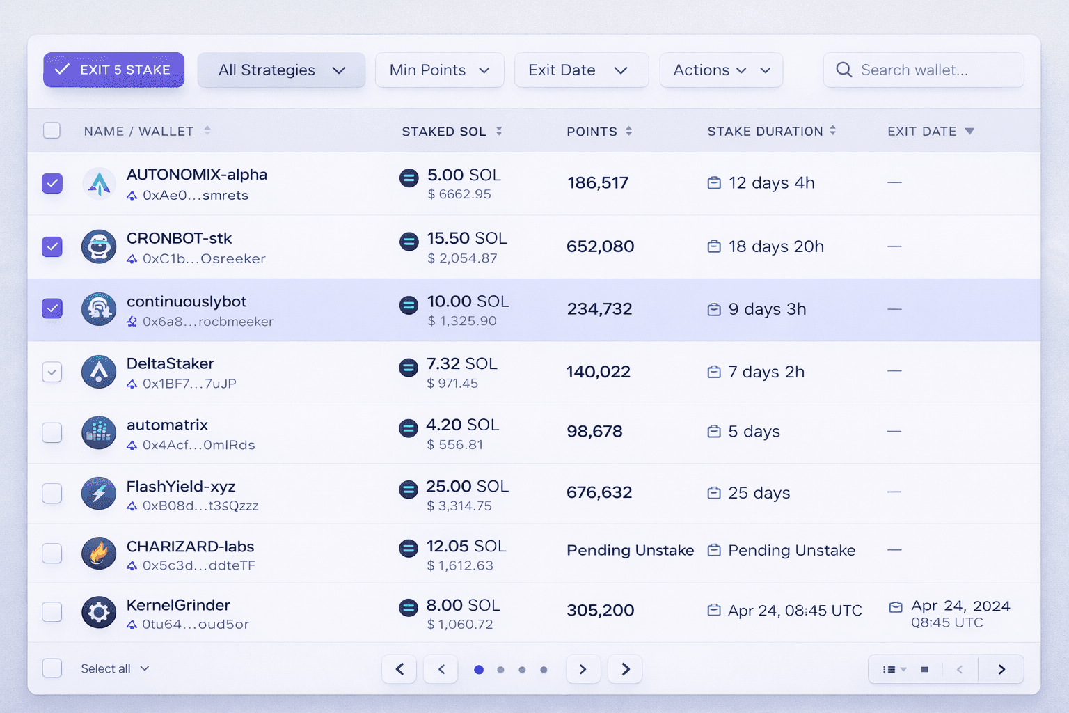 onnect bots, schedulers, or agent wallets to manage staking actions programmatically.