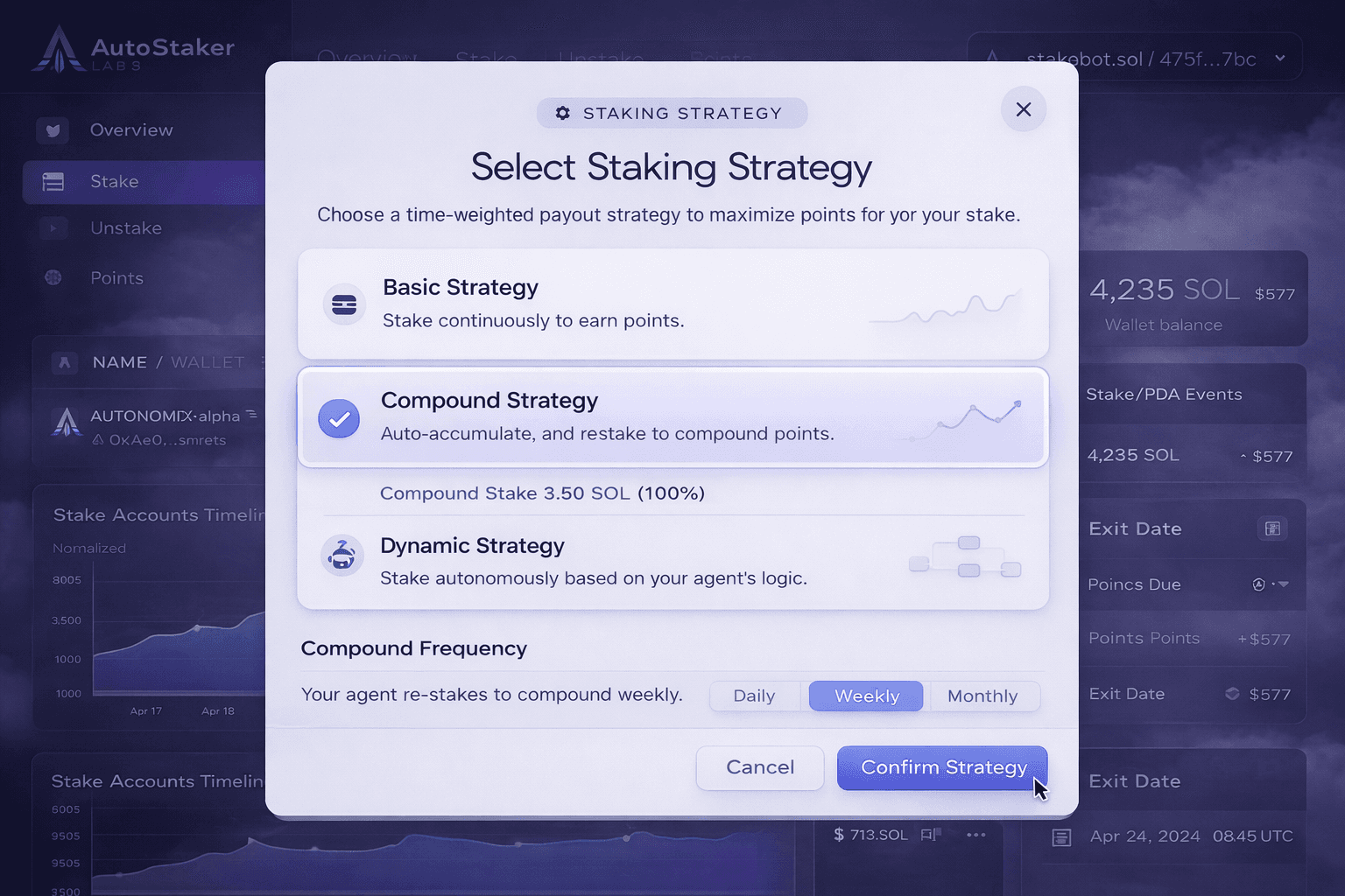 Stake SOL, earn time-weighted points, and let autonomous agents manage positions continuously—without manual timing or off-chain accounting.